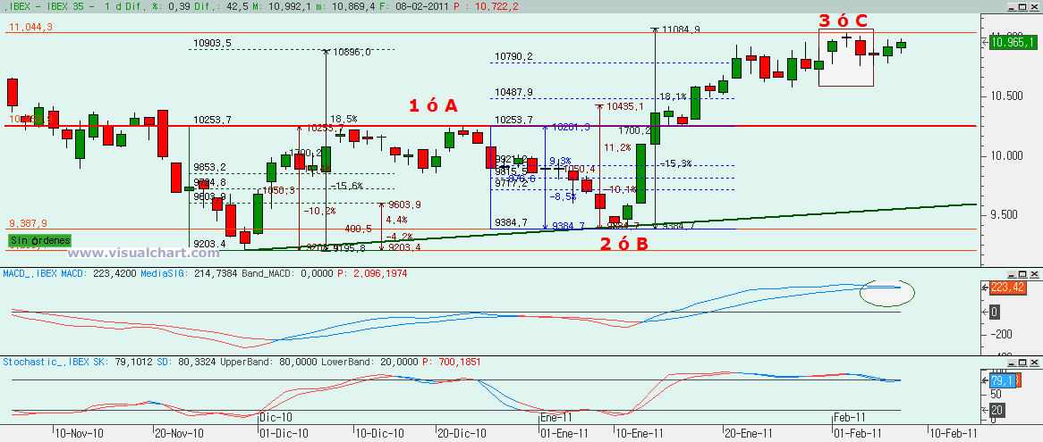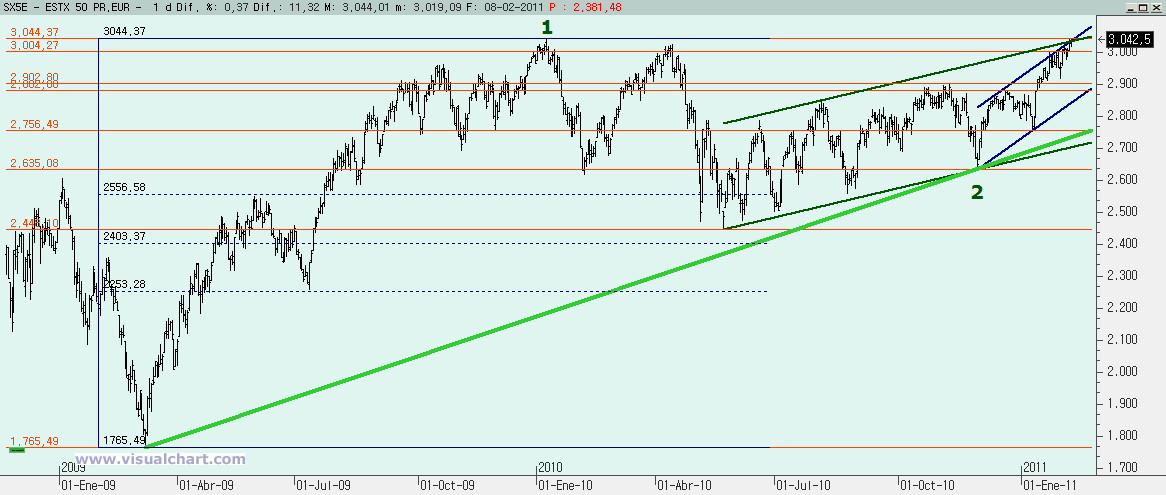 Martes 08 de Febrero de 2011: Seguimos con las subidas en las principales bolsas mundiales, unas con mayor fuerza que otras, pero todas siguen sólidas en las subidas. Los escenarios alcistas parecen estar en su pleno apogeo. Veamos lo que nos dicen los gráficos en los principales mercados.