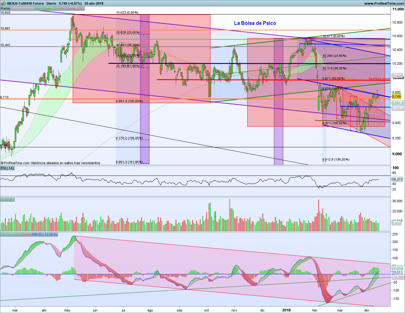 Análisis Técnico de La Bolsa de Psico de las Bolsas Europeas 16 abril 2018. Tras llegar todas las bolsas europeas a zonas de resistencia muy complicadas el viernes y dejar señales preocupantes, hoy lo han intentado, pero no han podido. Y las velas de hoy ya son claramente bajistas en varios de los índices.
