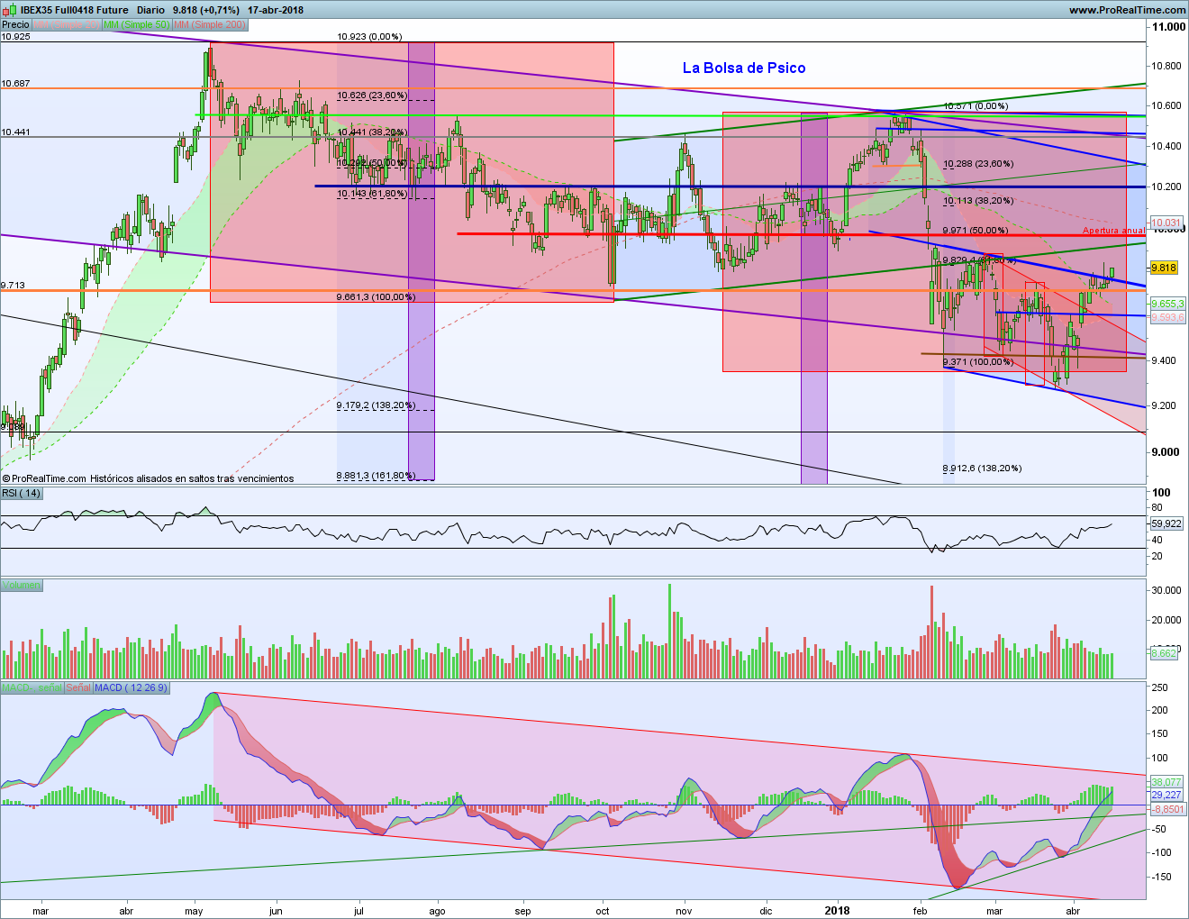 Análisis Técnico de La Bolsa de Psico de las Bolsas Europeas 17 abril 2018. Las señales del viernes y de ayer eran preocupantes para los alcistas. Todo al llegar a zonas de resistencias complicadas. Pero todas las señales deben confirmarse. Y hoy no sólo no se han confirmado las bajistas. Sino que se han anulado y se han superado las resistencias.