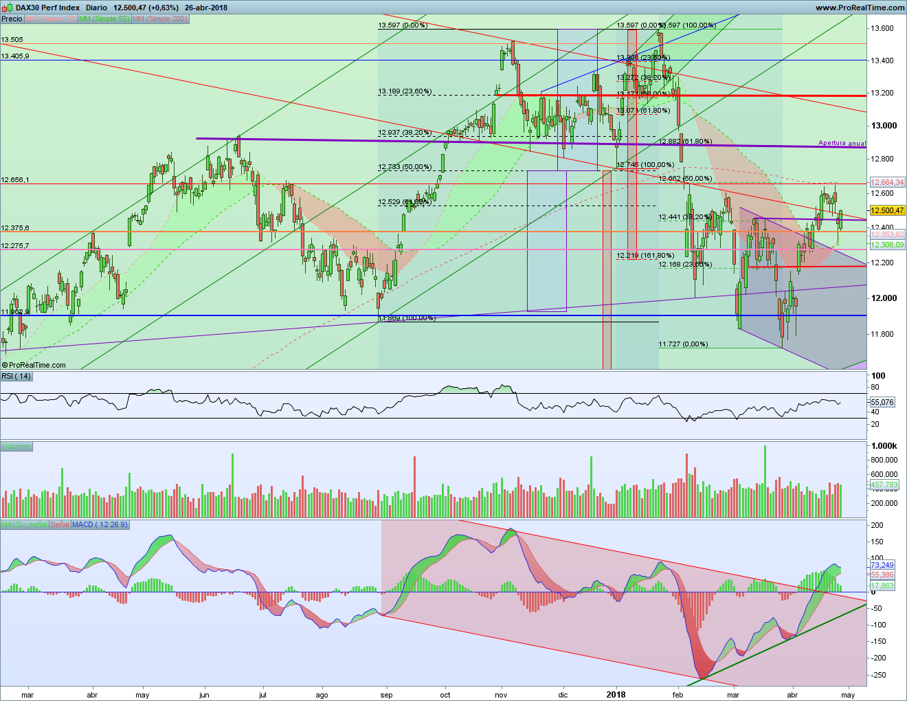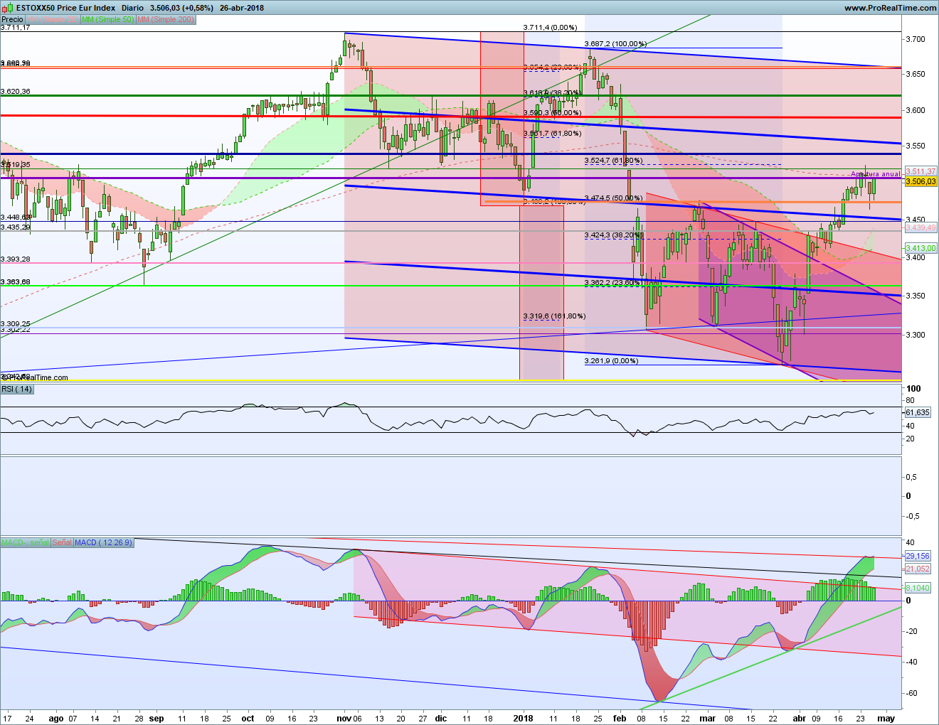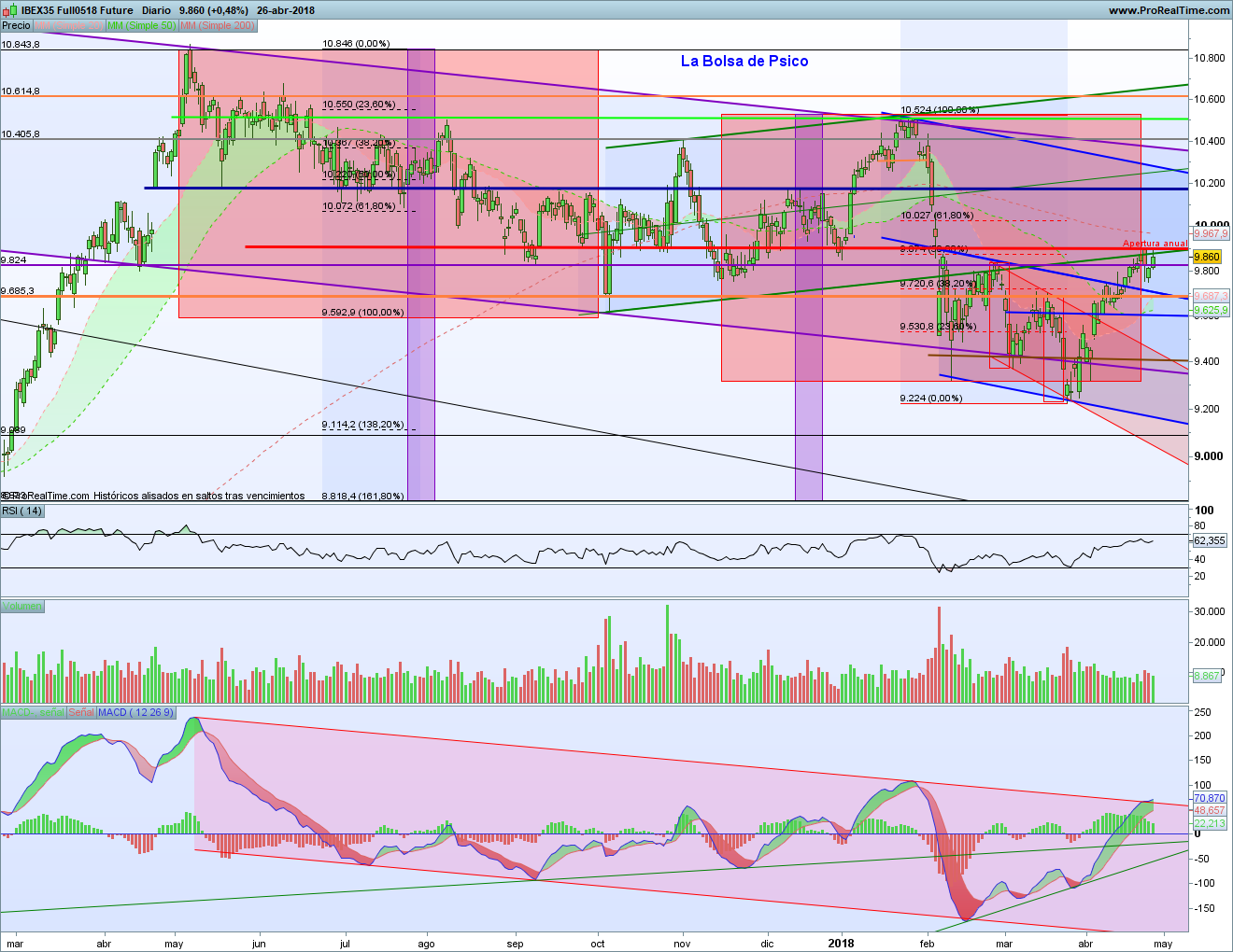 Análisis Técnico de La Bolsa de Psico de las Bolsas Europeas 26 abril 2018. Parece que, a pesar de las señales bajistas, las bolsas europeas se resisten a bajar. Y es que el que no hubiera habido un giro sincronizado de todos los índices ya era algo significativo. Y parece que con la caída de ayer ya ha sido suficiente.