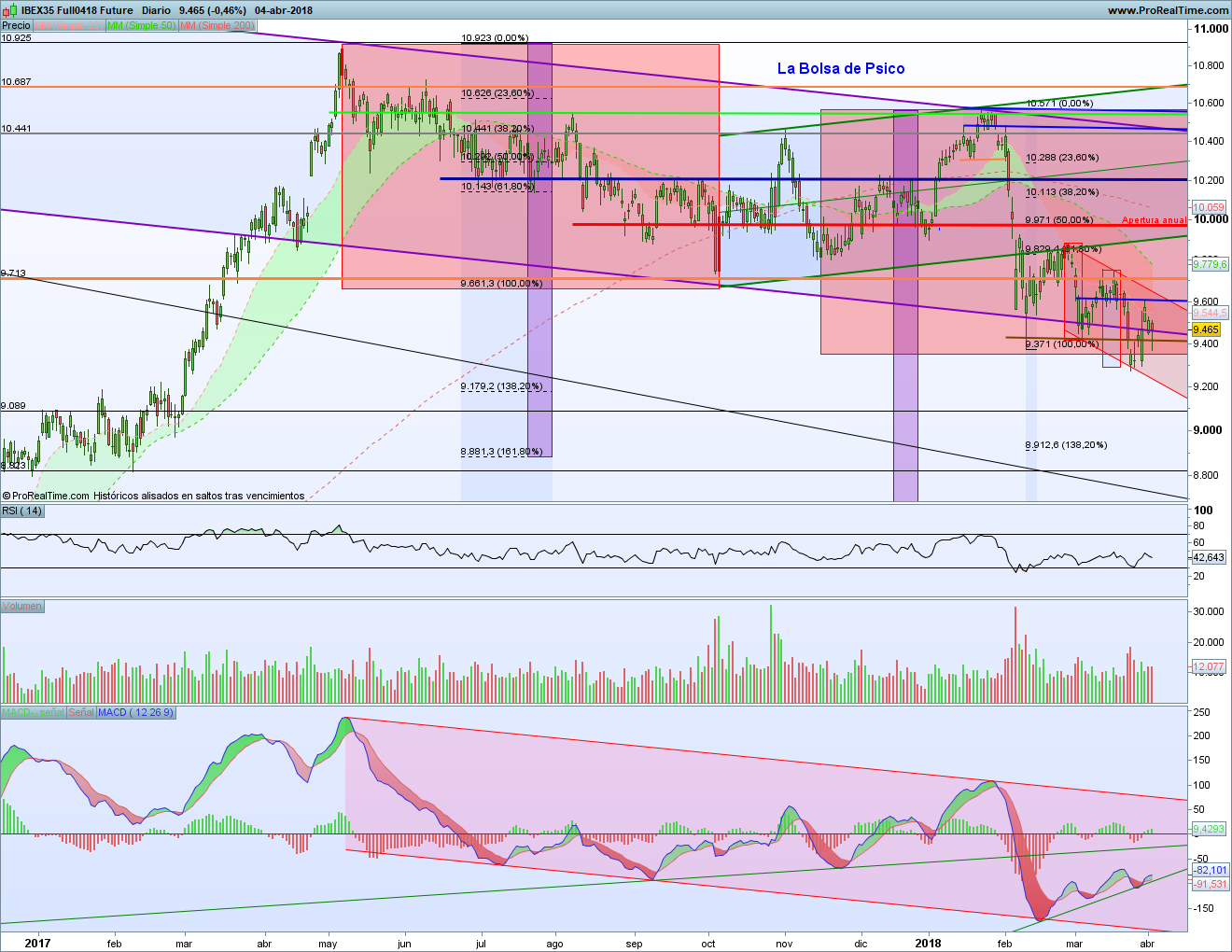 Análisis Técnico de La Bolsa de Psico de las Bolsas Europeas 4 abril 2018. Jornada de susto en las bolsas europeas en el día de hoy por la caída inicial del mercado americano. Sin embargo, a medida que se iba recuperando éste, también las bolsas europeas lo han hecho.