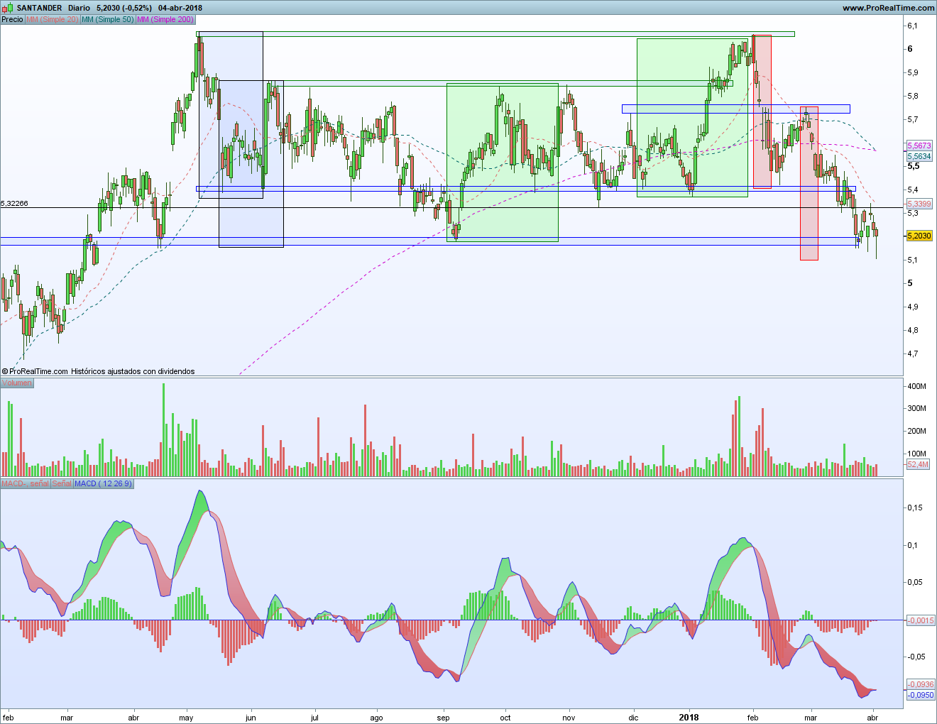 El valor que más pondera en el Ibex es el Banco Santander. Y hoy ha hecho algo muy interesante, tal y como te he comentado en la sesión. Por eso es conveniente revisarlo, porque puede significar mucho en lo que haga el Ibex.