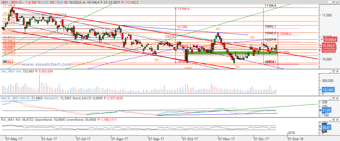 Ibex: Análisis técnico 21 diciembre 2017. Hoy hemos tenido más de lo mismo en el Ibex, aunque con una diferencia. Hemos visto caída hasta llegar de nuevo al soporte desde el que se estaba rebotando en los últimos días y allí ha vuelto a pasar lo mismo.