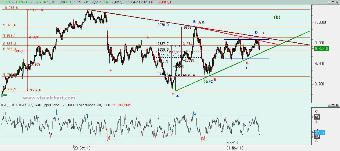 Jornada aburrida y sin apenas movimientos en el Ibex en el día de hoy para cerrar ligeramente en verde, lo que no es extraño en una situación de movimiento correctivo como el estamos teniendo. El caso es que nada ha cambiado con respecto al análisis de ayer y todo lo dicho entonces aún está vigente. Vamos a repetirlo, aunque parezca repetitivo.