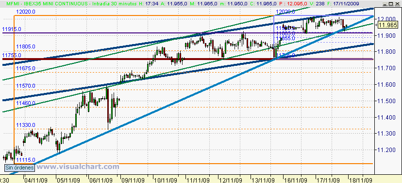 De hecho, podríamos incluso ir hasta los 11.755 e intentar formar una figura de HCH. Pero sabiendo que el viernes es día de vencimientos, lo normal sería que cualquier caída que se produjera fuera para volvernos hacia arriba el viernes.