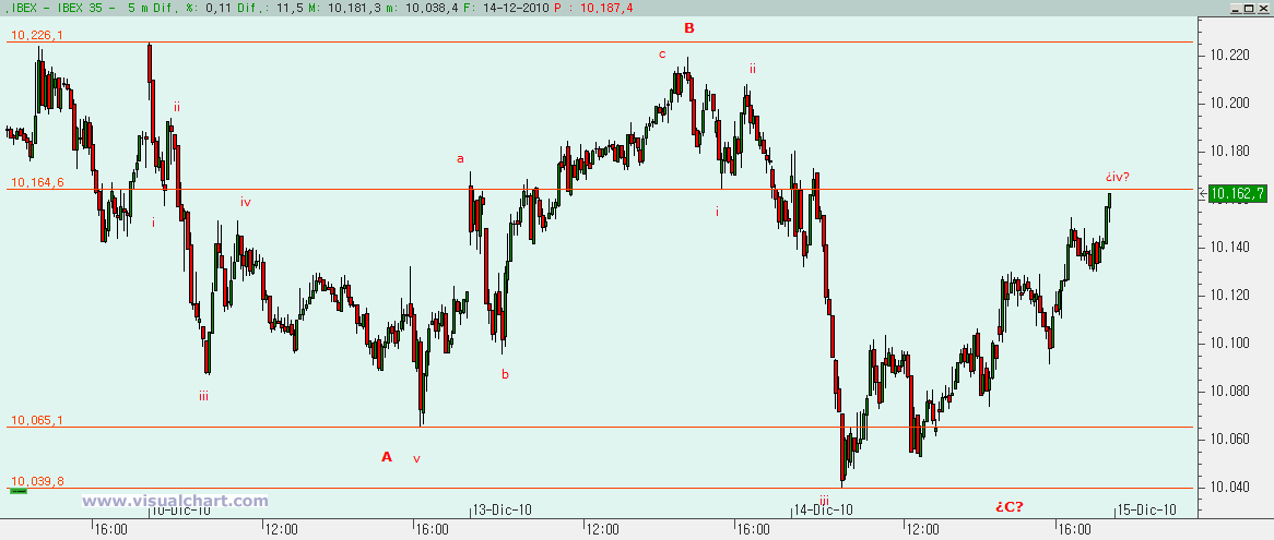 Por tanto, mañana debemos ver hacia dónde vamos y si somos capaces de ver el recuento correcto… Pero si que nos parece que desde los máximos del día 10 hemos podido ver una primera A (en 5 ondas), una B (en 3 ondas) y ahora una C (que podríamos haber tenido ya 4 ondas y quedar una 5 hacia abajo para visitar los mínimos de hoy o algo menos). O tal vez los mínimos de hoy hayan sido el final de esa C (la v)… Lo veremos si superamos o no los mínimos de la i de esta C….
