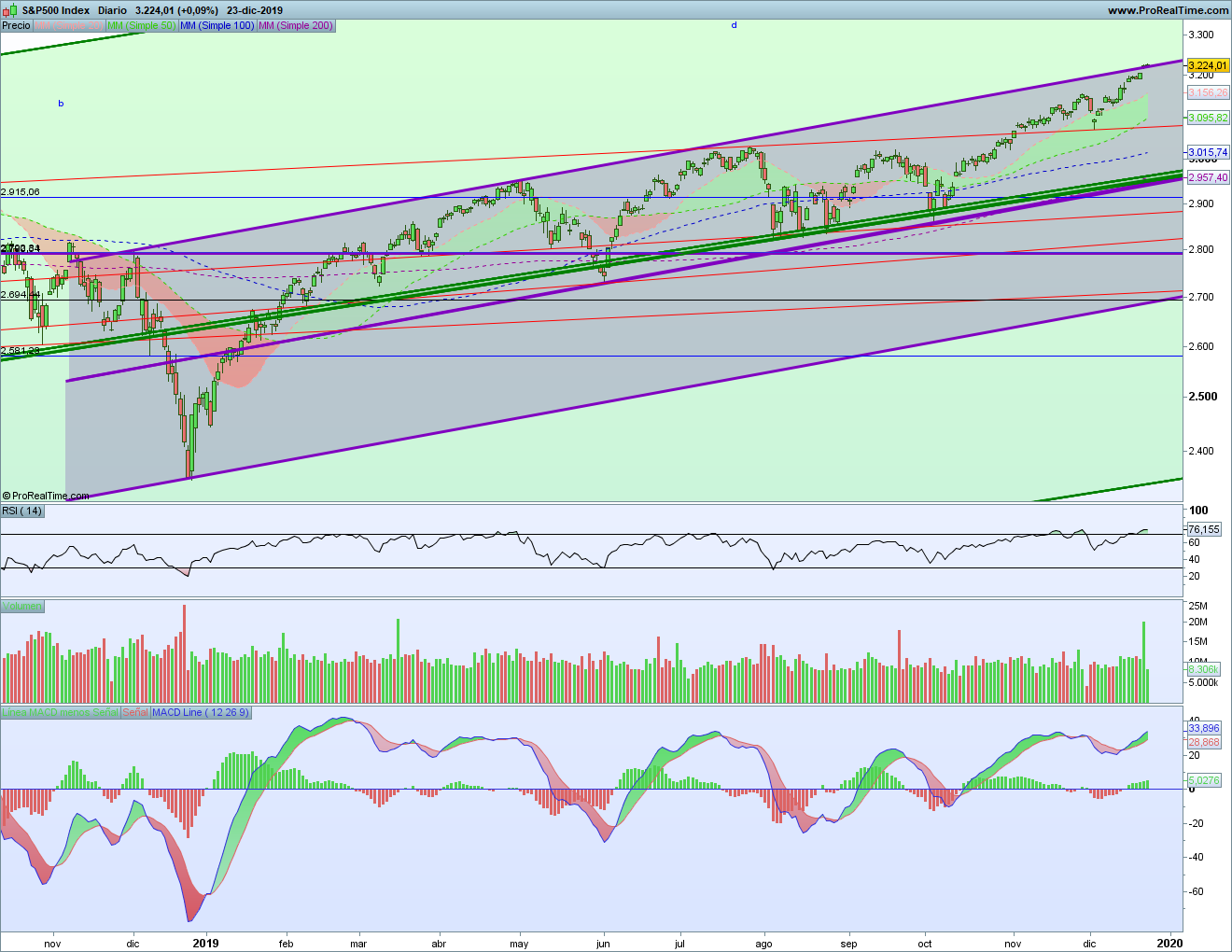 SP500: en la parte alta del tridente… Si recuerdas, a finales de noviembre te analicé el SP500 y te dije que estaba siguiendo desde finales de 2018 un tridente alcista muy parecido al que ha venido siguiendo desde 2009, aunque en escala reducida.